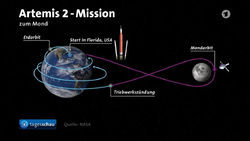 Der Mensch kehrt nach mehr als einem halben Jahrhundert zum Mond zurück: Verfolge die aktuelle Flugbahn der Artemis-II-Mission auf dem Weg zum Mond im „Livestream der NASA“. Das Orion-Raumschiff verfügt über Außenkameras am Rumpf. Siehe zur Artemis-II-Mission neueste Nachrichten auf der Website der Tagesschau. (NASA-Livestream) (Informatives Video)