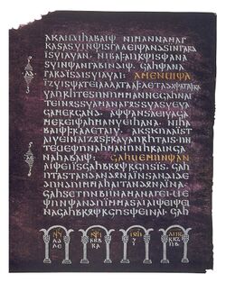 3. Altgermanistik, Germanistische Mediävistik und Germanische PhilologieDie Altgermanistik, die Germanistische Mediävistik und die Germanische Philologie sind drei eng miteinander verbundene, aber inhaltlich unterschiedlich akzentuierte Teilbereiche der germanistischen und historischen Sprach- und Literaturwissenschaft. Unter Altgermanistik versteht man den Bereich der Germanistik, der sich mit den ältesten schriftlichen Zeugnissen der germanischen Sprachen und Literaturen befasst. Dazu gehören die Sprach- und Textzeugnisse des frühen Mittelalters wie das Gotische[242], das Althochdeutsche[243], das Altsächsische[244], das Altenglische[245], das Altnordische[246] und andere frühgermanische Sprachstufen. Sie umfasst damit sowohl sprachwissenschaftliche als auch literaturwissenschaftliche Untersuchungen, die sich der Frühzeit germanischer Schriftlichkeit widmen. Die Germanistische Mediävistik bezeichnet dagegen die Teildisziplin der Germanistik[247], die sich mit der deutschen Literatur, Sprache und Kultur des Mittelalters beschäftigt, also vor allem mit Texten in mittelhochdeutscher und mittelniederdeutscher Sprache, mit ihren literarischen Traditionen, Gattungen und kulturellen Kontexten. Sie untersucht die mittelalterliche Überlieferung sowohl aus philologischer als auch aus literaturhistorischer Perspektive und bildet somit ein Bindeglied zwischen der Altgermanistik und der Neueren deutschen Literaturwissenschaft. Die Germanische Philologie schließlich ist der übergeordnete Begriff, der die wissenschaftliche Beschäftigung mit den germanischen Sprachen, Literaturen und Kulturen in ihrer Gesamtheit bezeichnet. Sie umfasst sowohl die sprachgeschichtliche und vergleichende Analyse der germanischen Sprachfamilie als auch die literarische und kulturhistorische Erforschung ihrer schriftlichen und mündlichen Überlieferungen. In ihr verbinden sich die altgermanistischen und mediävistischen Ansätze mit der allgemeinen historischen Sprachwissenschaft und Kulturgeschichte zu einem umfassenden Forschungsfeld.[248][249] 3.1. Sprachliche Überlieferungen der GermanenDie sprachlichen Überlieferungen der Germanen stellen einen zentralen, zugleich aber besonders lückenhaften Bereich der frühmittelalterlichen Quellenlage dar. Aufgrund der Tatsache, dass die germanischen Völker über weite Strecken der Antike und Spätantike hinweg keine eigene Schriftkultur im engeren Sinne ausgebildet hatten, sind ihre Sprachen zunächst ausschließlich über fremdsprachige Zeugnisse überliefert – etwa in Form von Eigennamen, Lehnwörtern oder kurzen Aussagen in griechischen und lateinischen Texten. Erst mit der Einführung der Runenschrift, die vermutlich im 2. Jahrhundert n. Chr. aus dem Kontakt mit lateinisch alphabetisierten Kulturen hervorging, beginnt eine eigenständige schriftsprachliche Tradition germanischer Sprachen. Das ältere Futhark, bestehend aus 24 Runen, wurde in verschiedenen Regionen Nord- und Mitteleuropas verwendet, blieb in seiner Funktion jedoch auf kurze Inschriften beschränkt – zumeist auf Gegenständen wie Fibeln, Waffen oder Grabsteinen. Inhaltlich sind diese Inschriften oft fragmentarisch und lassen nur begrenzte Aussagen über die Sprache oder den kulturellen Kontext zu.[250] Die bedeutendste zusammenhängende sprachliche Überlieferung aus frühgermanischer Zeit stellt die gotische Bibelübersetzung des Bischofs Wulfila (ca. 4. Jahrhundert) dar. Sie wurde in einer eigens geschaffenen Schrift – der gotischen Buchstabenschrift – niedergeschrieben und liefert nicht nur das älteste umfangreiche Zeugnis einer germanischen Sprache, sondern auch wertvolle Einsichten in Syntax, Morphologie und Wortschatz des Frühgotischen.[251] In der Folgezeit entstanden, beginnend im 8. Jahrhundert, auch schriftliche Zeugnisse weiterer westgermanischer Sprachen wie des Althochdeutschen, des Altenglischen und des Altsächsischen. Diese Texte sind allerdings sämtlich unter christlichem Einfluss entstanden und gehören bereits der Phase der schriftlich etablierten, vom Latein geprägten Klosterkultur an. Sie spiegeln daher nur eingeschränkt ältere vorchristliche Traditionen wider.[254] Ein bedeutender Sonderfall innerhalb der germanischen Überlieferung ist die altnordische Literatur, insbesondere die in Island überlieferte Edda-Literatur und die Sagaliteratur. Obwohl diese Texte erst ab dem 12. und 13. Jahrhundert verschriftlicht wurden, gehen viele ihrer Inhalte auf deutlich ältere mündliche Traditionen zurück, die bis in die vorchristliche Zeit reichen. In ihnen sind zahlreiche mythische, heroische und weltanschauliche Elemente überliefert, die als indirekte sprachliche Zeugnisse germanischer Religions- und Weltbilder interpretiert werden können. Gleichwohl ist auch hier methodische Vorsicht geboten, da die schriftliche Fixierung dieser Texte bereits in einem kulturellen Umfeld erfolgte, das stark vom Christentum und der lateinischen Schriftlichkeit geprägt war.[255] Die schriftlichen Zeugnisse setzen vergleichsweise spät ein, stehen in engem Zusammenhang mit Mission, Christianisierung und kultureller Assimilation an das lateinisch geprägte Europa und lassen vielfach nur indirekte Rückschlüsse auf ältere sprachliche und kulturelle Verhältnisse zu. Gleichwohl bilden sie in Kombination mit der Runologie, der vergleichenden Sprachwissenschaft und der Literaturphilologie die wichtigste Grundlage für die Rekonstruktion germanischer Sprach- und Denkformen im Übergang von der Spätantike zum Mittelalter. 3.2. Runologie[256] und InschriftenkundeDie Runenschrift ist das älteste Schriftsystem, das speziell für die germanischen Sprachen entwickelt wurde (Futhark). Sie wurde über mehr als 1400 Jahre hinweg als Mittel der schriftlichen Kommunikation genutzt. Ihr Verbreitungsgebiet erstreckte sich über große Teile Europas, vor allem über den deutschsprachigen Raum, Skandinavien und Großbritannien. Die Runenschrift entstand vor der Einführung der lateinischen Schrift 