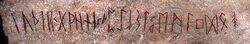 4.1. Runenfunde und -inschriften (Kleine beispielhafte Auswahl)4.1.1. Deutschland4.1.1.1. Runenstein vom Schleswiger DomDer sogenannte Runenstein vom Schleswiger Dom (Samnordisk runtextdatabas DR 6) wurde im Jahr 1897 im Fundament des Schleswiger Domes in Schleswig-Holstein entdeckt und datiert in die erste Hälfte des 11. Jahrhunderts. Er ist Teil der Gruppe der sogenannten England-Runensteine, die auf Verbindungen zwischen Skandinavien und den angelsächsischen Gebieten verweisen. Aufgrund seiner Ornamentik wird angenommen, dass er von einem schwedischen Runenmeister geschaffen wurde. Der Stein war als Spolie zweitverwendet worden, was durch Parallelen mit einem weiteren wiederverwendeten Runenstein aus der Gottorfer Bastion bestätigt wird. Seine Lage bildet zudem ein geographisches Bindeglied zwischen den Runensteinen DR 1 bis DR 4 von Haithabu und dem Fundort Schleswig. Die Inschrift, die nur teilweise erhalten ist, erwähnt die Errichtung des Steins zum Gedenken an einen Mann, der in einem Ort namens „Skia“ in England verstorben war. Nach der Deutung des ukrainischen Historikers Omeljan Pritsak könnte es sich bei diesem Ortsnamen um Shoebury in Essex oder Skidby in Yorkshire handeln. Die Inschrift nennt außerdem den Runenschnitzer Guðmundr und verweist auf den christlichen Glaubenshorizont, was auf die Übergangszeit zwischen heidnischer und christlicher Tradition im skandinavischen Raum hinweist.[262] 4.1.1.2 Runenstein von RogäsenDer Runenstein von Rogäsen, gefunden im 19. Jahrhundert in Rogäsen (seit 2001 Teil der Gemeinde Rosenau, Brandenburg), ist ein einzigartiger norddeutscher Inschriftenstein, der heute im Kreismuseum Jerichower Land in Genthin, Sachsen-Anhalt, ausgestellt wird. Der Stein wurde 1851 im Zuge von Aufräumarbeiten nach einem Brand des örtlichen Schulhauses auf einem alten Friedhof entdeckt, als ein Granitblock für den Wiederaufbau gesprengt wurde. Auf der zuvor im Boden liegenden, abgeflachten Rückseite wurden runenartige Zeichen sichtbar. Die Bruchstücke wurden gesammelt, zusammengesetzt und zunächst im Gutspark des Besitzers Richard Graf von Wartensleben aufgestellt. Die Inschrift konnte bisher nicht sicher entschlüsselt werden. Alexander von Humboldt sowie weitere Gelehrte konnten keine Deutung liefern. Der Schriftsachverständige Altrichter interpretierte die Zeichen als mittelalterliche Geheimschrift einer Bauhütte, während andere Hypothesen sie als Hausmarken zur Kennzeichnung von Abgaben betrachten. Eine Datierung der Inschrift blieb bislang ungeklärt. Der Stein misst nach dem Zusammensetzen 1,14 Meter in der Höhe und 0,86 Meter in der Breite, die Zeichen sind bogenförmig in zwei Zeilen eingraviert. Aus Gründen des Witterungsschutzes übergab Graf von Wartensleben den Stein 1928 dem Museum, wo er unter einem Schutzdach im Vorgarten aufgestellt wurde. Der Runenstein von Rogäsen gilt als einzigartig in Norddeutschland.[263] 4.1.2. Dänemark4.1.2.1. Runeninschrift auf einem kleinen MesserDie archäologische Entdeckung einer fast 2000 Jahre alten Runeninschrift auf einem kleinen Messer aus Dänemark liefert bedeutende neue Erkenntnisse zur frühgermanischen Schriftlichkeit. Das Objekt wurde im Kontext eines Urnengrabs bei Odense gefunden und trägt auf der Klinge die Runenfolge hirila, was im Urnordischen vermutlich „kleines Schwert“ bedeutet. Die Inschrift kann nach Angaben des Museum Odense auf etwa 150 n. Chr. datiert werden und stellt damit eine der ältesten bekannten Runenverwendungen überhaupt dar. Ein vergleichbar früher Runenfund wurde zuletzt 1865 in Vimosen, ebenfalls in der Region Fünen, gemacht. Die Runenschrift, die den Germanen als göttliches Geschenk – insbesondere des Gottes Odin – galt, wurde von einer gebildeten Elite zur rituellen oder symbolischen Kommunikation genutzt. Tatsächlich basiert sie vermutlich auf dem lateinischen Alphabet. Die Runen entwickelten sich im ersten nachchristlichen Jahrhundert und verbreiteten sich rasch über Skandinavien hinaus. Der nun gefundene Gegenstand zeugt von der frühen Verwendung dieser Schriftform in Alltagskontexten, auch wenn der genaue Zweck der Inschrift – ob als Objektbezeichnung oder Eigentümermarkierung – offenbleibt. Der Fund ist aufgrund seines Alters und der Klarheit der Inschrift von herausragender wissenschaftlicher Bedeutung und wird als seltenes Zeugnis früher runischer Schriftlichkeit eingeordnet.[264] 4.1.3. Schweden4.1.3.1 KylversteinDer sogenannte Kylverstein (G 88) ist nach dem Hof Kylver im Ortsteil Stånga auf der schwedischen Insel Gotland benannt, wo der Kalkstein einst vermutlich als Abdeckung eines Grabes Verwendung fand. Seine Runeninschrift wurde um das Jahr 400 n. Chr. eingeritzt. Manche Forscher leiten daraus die Hypothese ab, dass sich die Runenschrift über Gotland nach Schweden verbreitet habe. Allerdings weisen auch der Einangstein sowie der Kjölevikstein in Norwegen ein ähnliches Alter auf, sodass eine eindeutige Herkunft nicht gesichert ist. Der im Jahr 1903 entdeckte Kylverstein enthält die vollständig erhaltene Zeichenreihe des älteren Futhark, das damit die ältesten bekannten schwedischen Runen dokumentiert. Zusätzlich zum Futhark lassen sich auf dem Stein mehrere T-förmige Runen erkennen, die in ihrer Form an verzweigte Bäume erinnern, sowie das Runenpalindrom „sueus“, dessen Sinn bislang ungeklärt bleibt. Als bislang ältester Nachweis einer Runeninschrift gilt der Kamm von Vimose, datiert auf etwa 160 n. Chr. Die Meldorffibel, die auf etwa 50 n. Chr. zurückgeht, weist zwar eine frühere Inschrift auf, diese könnte jedoch auch mit lateinischen Buchstaben geschrieben worden sein. Die älteste vollständig überlieferte Runenreihe ist jedenfalls auf dem Kylverstein zu finden. Seit seiner Entdeckung bemühen sich Historiker, Sprachwissenschaftler und Runenkundler darum, die Inschrift zu entschlüsseln – bislang jedoch ohne durchschlagenden Erfolg. Einige Fachleute vermuten, das Alphabet sei ursprünglich 