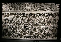 Besonders im Selbststudium ist es von größter Bedeutung, sich mit den antiken Texten über die Germanen auseinanderzusetzen, da diese Schriften den Grundstein jeglichen Verständnisses der germanischen Völker bilden. Wer die Ursprünge, die gesellschaftlichen Strukturen und die kulturellen Eigenheiten der Germanen erfassen möchte, ist auf die Darstellungen römischer und griechischer Autoren angewiesen, da die Germanen selbst keine eigenen schriftlichen Zeugnisse hinterlassen haben. Diese Quellen sind somit die einzigen zeitgenössischen Berichte, die ein Bild von den Germanen in ihrer Frühzeit vermitteln. Ohne die Kenntnis dieser Texte bleibt das Wissen über die germanischen Völker fragmentarisch und unvollständig, da archäologische Funde oder spätere Überlieferungen allein nicht in der Lage sind, das geistige, kulturelle und politische Leben der Germanen in ihrer Gesamtheit zu rekonstruieren. Erst durch die kritische Lektüre und Analyse der antiken Autoren lässt sich ein umfassenderes Verständnis entwickeln, das sowohl die Fremdwahrnehmung durch die Römer als auch die Eigenart der germanischen Stämme berücksichtigt. Gerade im Selbststudium ist diese Auseinandersetzung unerlässlich, da nur durch die intensive Beschäftigung mit den ursprünglichen Quellen ein solides Fundament entsteht, auf dem weiterführendes Wissen aufgebaut werden kann. Wer die antiken Texte ausblendet, verzichtet auf das zentrale Instrument, das für eine wissenschaftlich fundierte Erkenntnis über die Germanen unabdingbar ist.[42][43][44] 3.2. Caesar, Tacitus und Plinius d. Ä.3.2.1. Gaius Iulius CaesarCaesars wichtigste Quelle zu den Germanen ist sein Werk Commentarii de bello Gallico, das den Gallischen Krieg von 58 bis 51 v. Chr. beschreibt. Darin behandelt er die Germanen vor allem im Buch VI. Caesar schildert die Germanen als kriegerische, unerschrockene und an raues Klima gewöhnte Völker jenseits des Rheins, die sich von den keltischen Galliern deutlich unterscheiden würden. Er hebt ihre kriegerische Kultur, ihre soziale Organisation in Stämmen und ihre einfache Lebensweise hervor. Zudem beschreibt er germanische Bräuche wie die gemeinschaftliche Nutzung von Land und das Fehlen fester Städte. Die Germanen erscheinen bei Caesar meist als Gegner Roms, deren Bedrohung den römischen Vorstoß über den Rhein notwendig macht. Seine Schilderungen sind dabei auch politisch motiviert, um seine militärischen Unternehmungen zu rechtfertigen.[45][46][47][48] 3.2.2. Publius Cornelius TacitusTacitus verfasste um 98 n. Chr. die Germania (De origine et situ Germanorum), die bis heute als eine der wichtigsten literarischen Quellen zur Frühgeschichte der Germanen gilt. In diesem ethnographischen Traktat beschreibt Tacitus die Sitten, Gebräuche, Religion und Gesellschaftsstrukturen der germanischen Stämme. Er idealisiert die Germanen teils als moralisch integre und tapfere Völker, stellt sie dem aus seiner Sicht dekadenten Rom gegenüber und nutzt die Darstellung auch als moralische Kritik an der eigenen Gesellschaft. Tacitus nennt zahlreiche Stämme, wie die Bataver, Chatten und Sueben, und gibt Einblicke in germanische Rechtsbräuche, Volksversammlungen und religiöse Vorstellungen. Obgleich er vermutlich nie selbst Germanien bereist hat, beruht seine Darstellung auf Berichten römischer Feldherren, Händler und Gelehrter.[49][50][51][52][53][54][55] Zudem behandelte Tacitus die Germanen und Germanien in seinen Annales (Ab excessu divi Augusti) mehrfach, insbesondere in den Büchern I und II. Eine prägnante Passage, in der er die Germanen beschreibt, findet sich in Annales I, Kapitel 55–72[56], wo er den römischen Feldzug des Publius Quinctilius Varus[57][58][59][60] beschreibt. Darüber hinaus zieht Tacitus in Annales II, Kapitel 1–5 wieder Bezug auf die Germanen, vor allem in ethnographischen Bemerkungen über deren Sitten, Lebensweise und militärische Organisation im Kontext römischer Feldzüge.[61][62][63] 3.2.3. Plinius der ÄlterePlinius erwähnt die Germanen in seinem enzyklopädischen Werk Naturalis Historia, das um 77 n. Chr. verfasst wurde. In mehreren Büchern widmet er sich Geographie, Ethnographie und Naturkunde, wobei auch germanische Völkerstämme thematisiert werden. Plinius führt zahlreiche Stämme namentlich auf und berichtet von deren Verbreitungsgebieten nördlich der römischen Reichsgrenzen. Er beschreibt die Germanen als naturverbundene, kräftige und kriegerische Menschen, die in einer ungezähmten Landschaft leben. Seine Darstellungen sind oft kürzer und beiläufiger als die bei Caesar und Tacitus, liefern aber wertvolle Einzelangaben über Siedlungsräume und Eigenheiten der Stämme sowie über Pflanzen, Tiere und klimatische Verhältnisse Germaniens. Seine Naturalis Historia zählt zu den bedeutendsten Quellen der antiken Natur- und Völkerkunde.[64][65][66] 3.3. Strabon, Ptolemäus, Jordanes und Cassius Dio3.3.1. StrabonIn seinem Werk Geographika, verfasst zwischen etwa 20 v. Chr. und 23 n. Chr., behandelt Strabon[67] im Buch VII die germanischen Völker. Er beschreibt die geografische Ausdehnung Germaniens, die Lage bedeutender Stämme wie der Sueben, Cherusker und Chatten und liefert Angaben über Klima, Landschaft und Lebensweise. Er stellt die Germanen als kriegerisch und an harte Lebensbedingungen angepasst dar. Seine Berichte basieren vorwiegend auf älteren griechischen und römischen Quellen sowie auf römischen Kriegsberichten, und er überliefert auch Nachrichten über Ereignisse wie die Varusschlacht.[68][69][70] 3.3.2. Claudius PtolemäusIn seinem Werk Geographike Hyphegesis (Geographia), entstanden um 150 n. Chr., kartierte Claudius Ptolemäus[71] die damals bekannte Welt, darunter auch Germanien. Im Buch II benennt er zahlreiche germanische Stämme, Städte und geografische Merkmale, wobei er mit einem für die Antike einzigartigen System von Längen- und Breitengraden arbeitete. Seine Angaben bieten ein wertvolles Zeugnis für die räumliche 